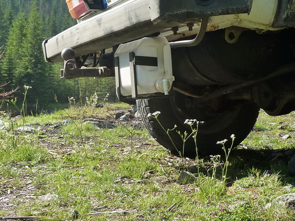 Musím pochváliť ten Paťov vodovod. Na cestný trip je to ozaj praktické príslušenstvo. Už som pozeral kam by som to namontoval ja, keďže mám menšiu LPG nádrž, tak po bokoch mi zostáva miesto presne na takúto 5l bandasku. Ani to nebude vidno.