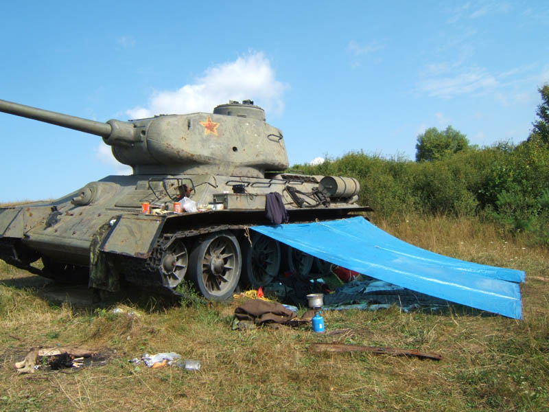 Tank na fotkách byl následně zneužit jako prostředek pro kemping.