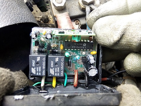 Určitě je to DO navijáku . V elektronice je vidět VF přijímač a dvě relé dávají tušit dvě funkce (tam a zpět) Tomu odpovídaly i silové kabely.