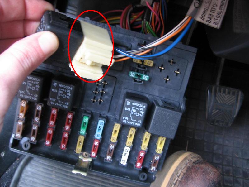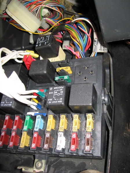 původní relátko, ještě na svým místě<br />(vpravo nahoře volný místo pro relé př. mlhovek - jak tu někdo řešil...)