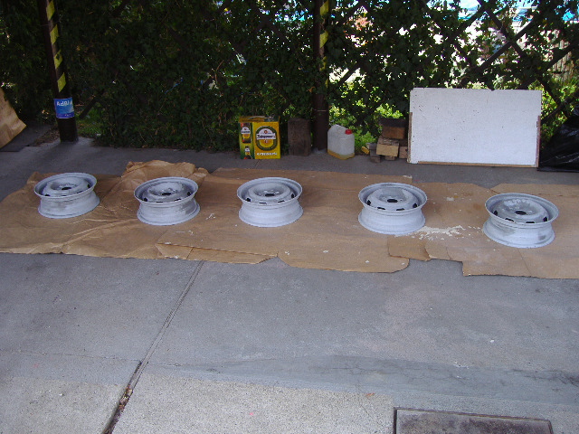 , nechával jsem si opískovat ráfky a ještě ošopovat zinkem( nebo tak nak se to jmenuje )no je na tom prostě nastříkanej roztavenej zinek. Dneska jsem je stříkal plničem. pak na to půjde ještě základ a pak bílá akrylátová barva.Nějaké foto pro Vás :