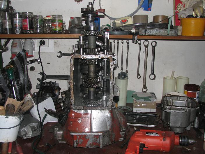 Převodovka: 5st. repasovaná s fiatu spideru s nadsazenou přírubou. Dělal sem jí asik rok. z důvodu nesehnatelných ložisek a výměny 4 a 3 převodového stupně z 2105kové převodovky. Jinak sem tam pužil plno dílů s lada převodovky. :)